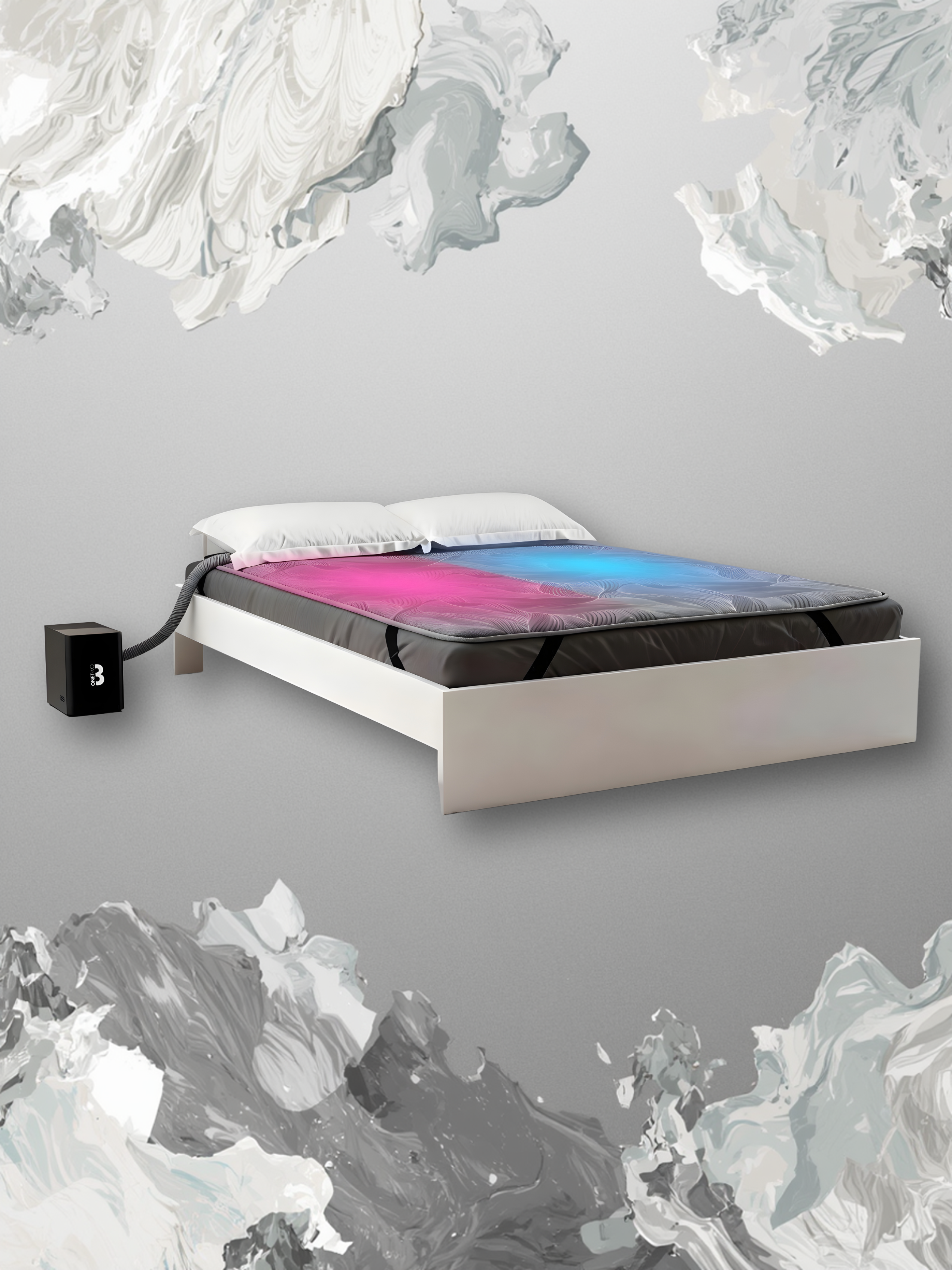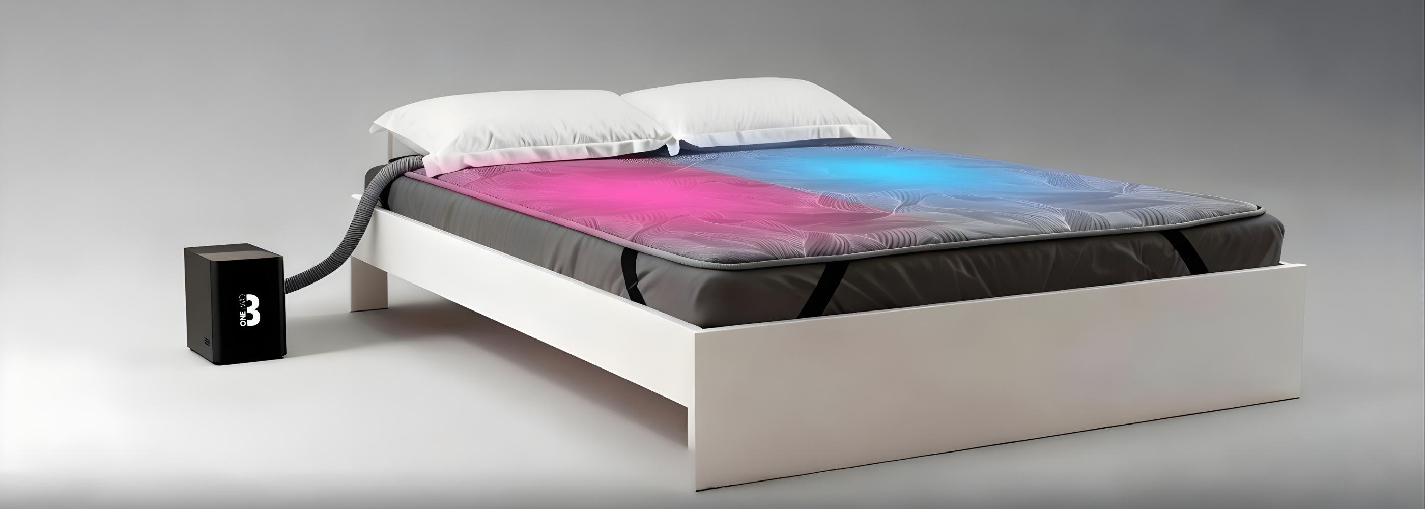 OneTwo3 er et temperaturregulerende sengesystem, der aktivt køler eller varmer din seng, så du kan sove ved den temperatur, der passer bedst til dig.